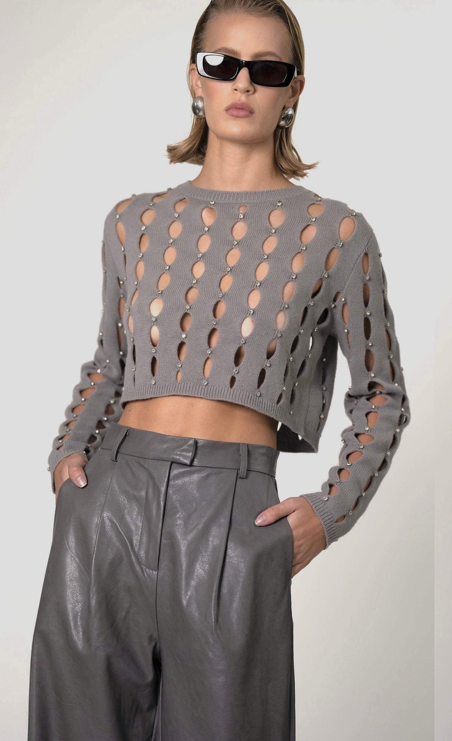 The Nils Sweater is an open-knit design adorned with scattered rhinestones for a subtle touch of glamour. Effortlessly cool and versatile, the kind of piece that elevates any look with ease.